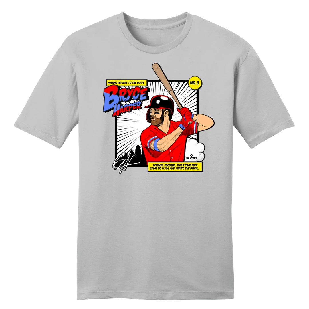 Hailed as one of the game’s all-time five-tool players (one who excels at hitting for average, power, base running, throwing, and hitting), Bryce Harper is a hero to Philadelphia fans. Get his official MLBPA apparel at In The Clutch